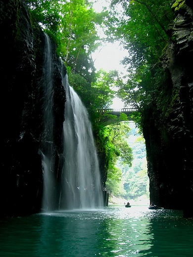 美しく険しい渓谷を流れる清流へ、滔々と水を落としつづける滝。